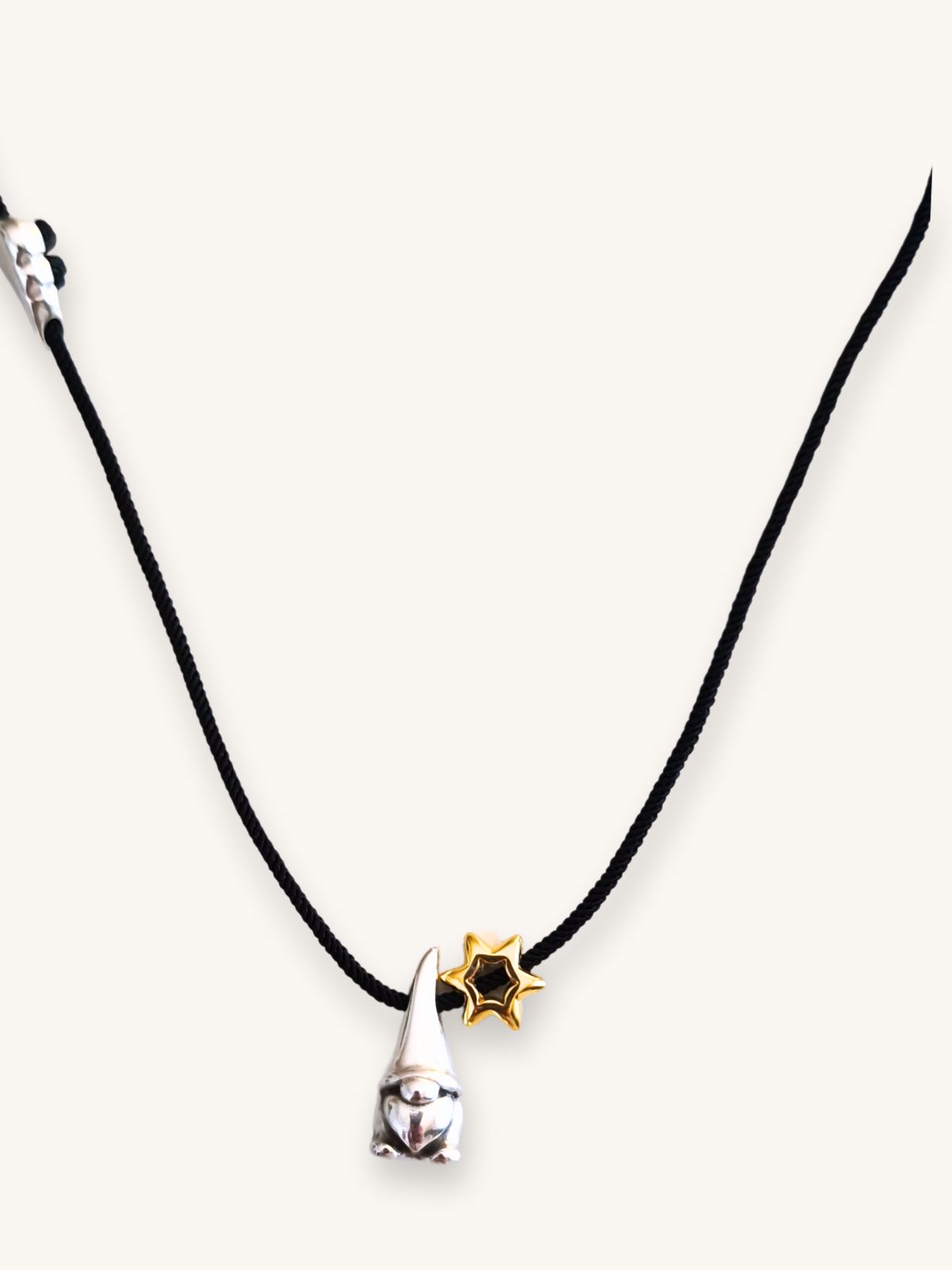 • Υλικά: Ορείχαλκος με επαργύρωση (νανάκι) και 24Κ επιχρύσωση (αστεράκι), μαύρο κορδόνι