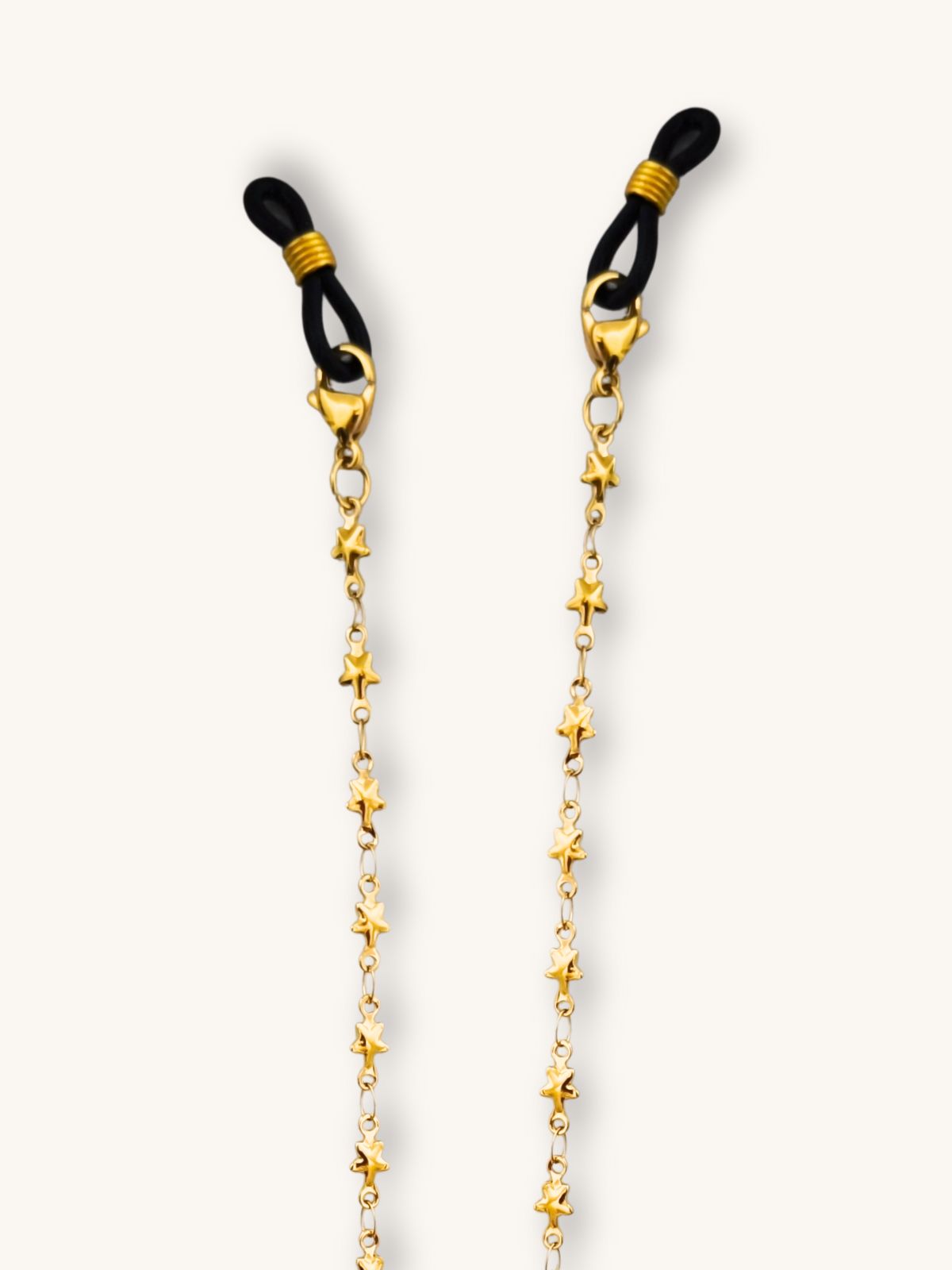 Δώσε μια παιχνιδιάρικη και λαμπερή πινελιά στο στυλ σου με την αλυσίδα γυαλιών & κολιέ 2-σε-1 από ατσάλι με χρυσά αστεράκια. Ο διακριτικός σχεδιασμός και η ζεστή λάμψη των χρυσών αστεριών συνδυάζονται με πρακτικότητα, δημιουργώντας ένα αξεσουάρ που είναι ταυτόχρονα fashion statement και χρηστικό.