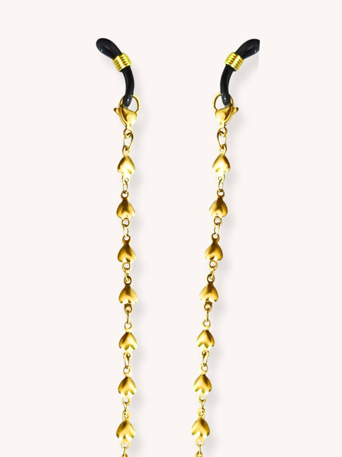 Δώσε μια λαμπερή και κομψή πινελιά στο στυλ σου με την αλυσίδα γυαλιών & κολιέ 2-σε-1 από ατσάλι με χρυσές καρδούλες. Ο διακριτικός σχεδιασμός και η ζεστή λάμψη των χρυσών καρδιών συνδυάζονται με πρακτικότητα, δημιουργώντας ένα αξεσουάρ που είναι ταυτόχρονα fashion statement και χρηστικό.