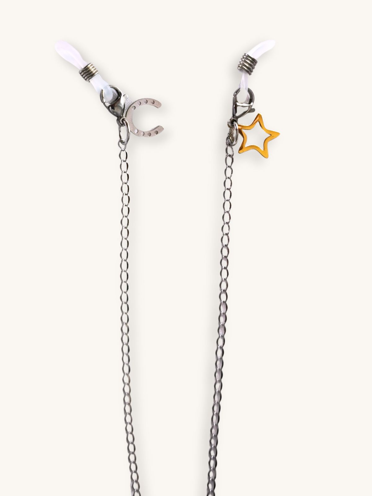 Η αλυσίδα γυαλιών & κολιέ 2-σε-1 από επαργυρωμένο ατσάλι με ασημί πεταλάκι και χρυσό αστέρι συνδυάζει κομψότητα, θετική ενέργεια και παιχνιδιάρικη λάμψη. Το πεταλάκι φέρνει τύχη, ενώ το αστέρι δίνει ένα διακριτικό αλλά λαμπερό touch, ιδανικό για να απογειώσει το προσωπικό σου στυλ.