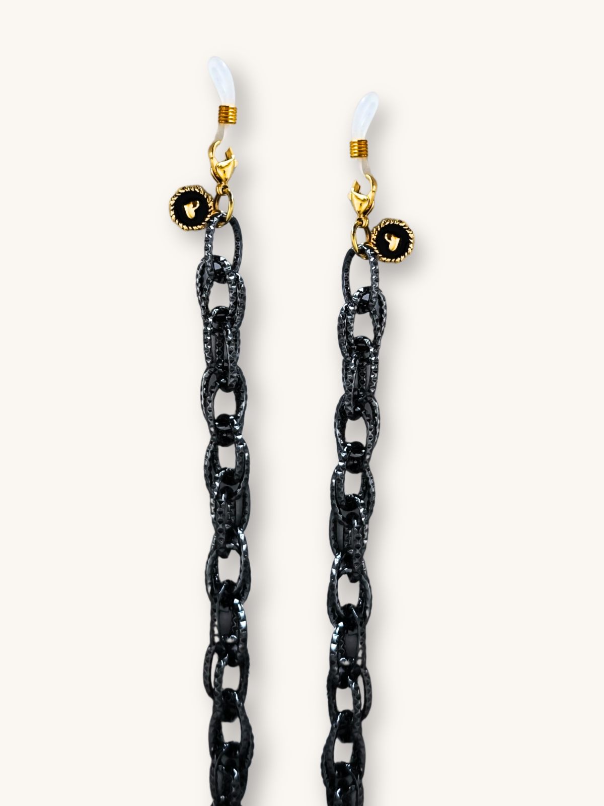 Αλυσίδα Γυαλιών & Κολιέ 2-σε-1 σε Gun Metal με Χρυσές Καρδούλες