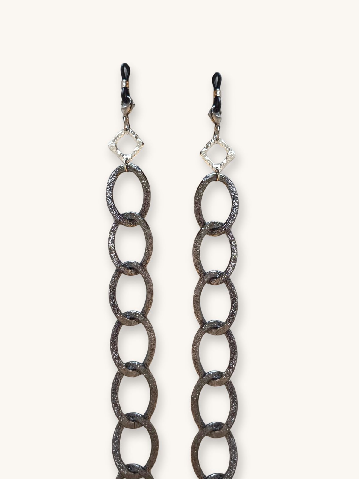 Αλυσίδα Γυαλιών & Κολιέ 2-σε-1 σε Gun Metal με Ασημί Γεωμετρικά Στοιχεία