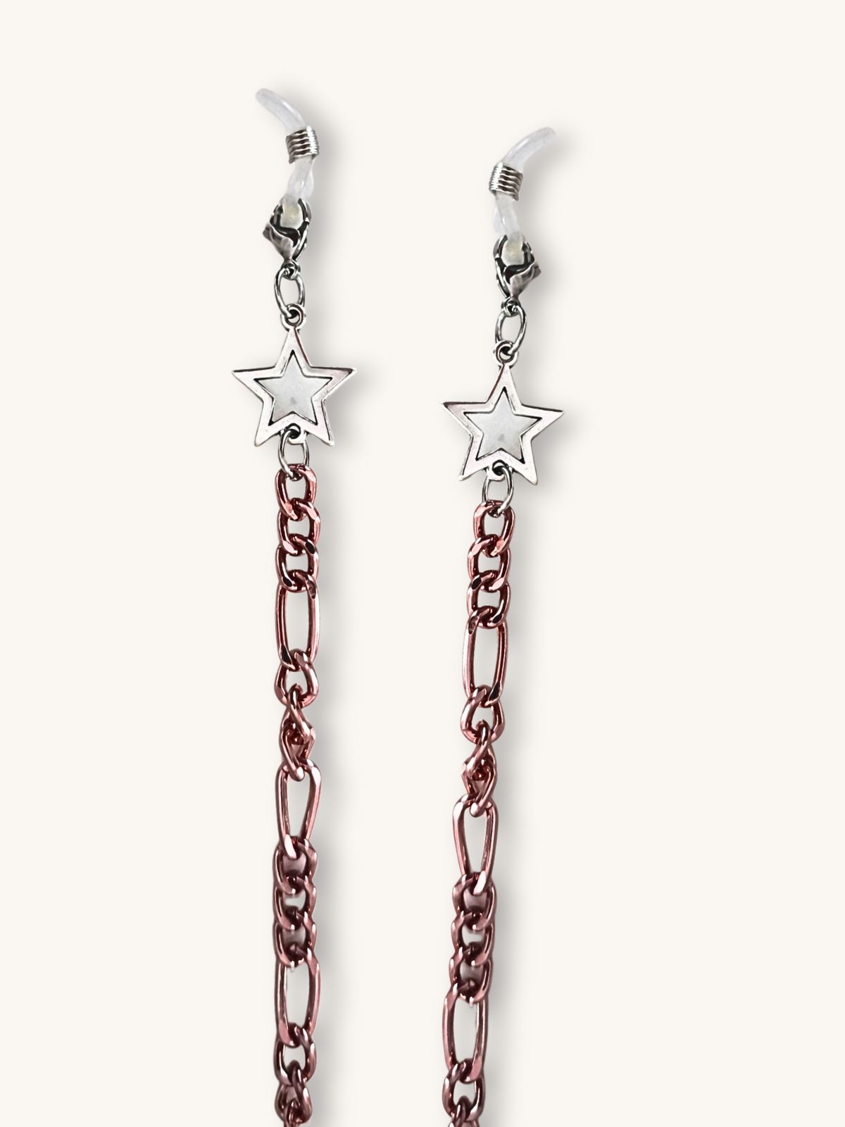 Ανακάλυψε την ροζ χρυσή αλυσίδα γυαλιών & κολιέ 2-σε-1 με ασημί αστέρια. Ένα statement αξεσουάρ που προσθέτει λάμψη και παιχνιδιάρικη κομψότητα σε κάθε εμφάνιση, ιδανικό για fashion-forward εμφανίσεις.