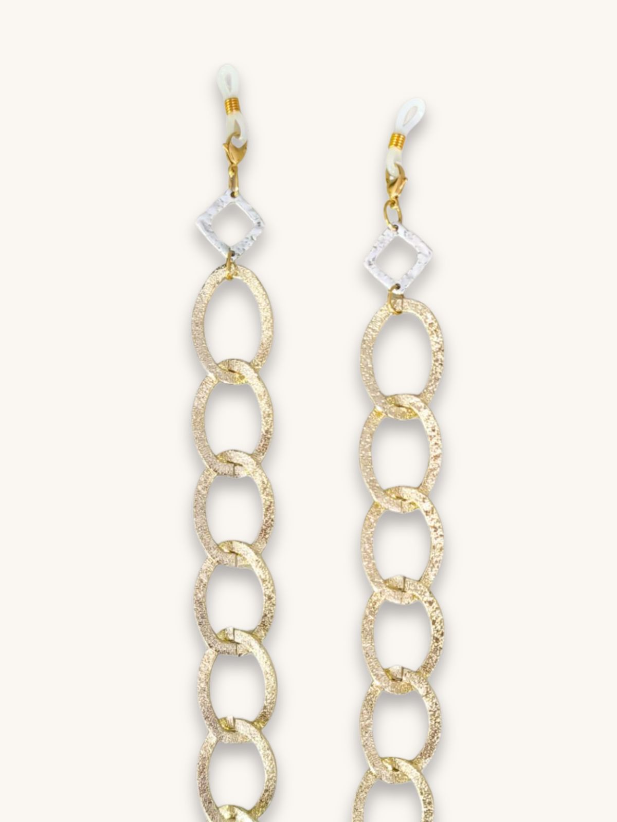 Ανακάλυψε την elegant αλυσίδα γυαλιών & κολιέ 2-σε-1 σε χρυσό με ασημί γεωμετρικά στοιχεία. Μοντέρνα, καθαρή και minimal chic — ιδανική για καθημερινό στυλ με διακριτική αντίθεση.