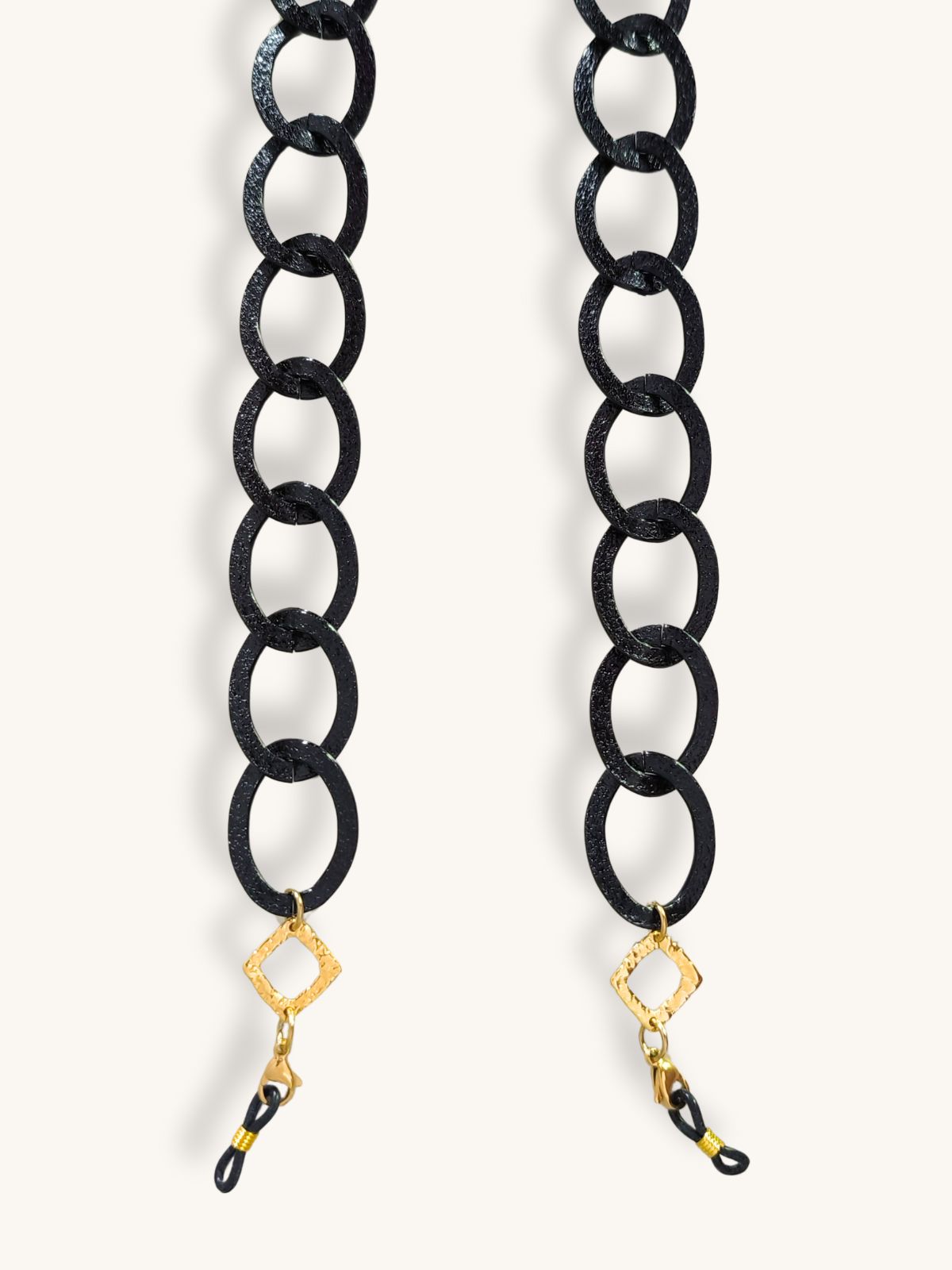 Αναβάθμισε το στυλ σου με την αλυσίδα γυαλιών & κολιέ 2-σε-1 σε μαύρο ματ από αλουμίνιο, με πολυτελή στοιχεία από επιχρυσωμένο ορείχαλκο 24Κ. Ο δυναμικός συνδυασμός του μαύρου με το χρυσό δημιουργεί εντυπωσιακό contrast που αποπνέει minimal κομψότητα με rock-chic χαρακτήρα.