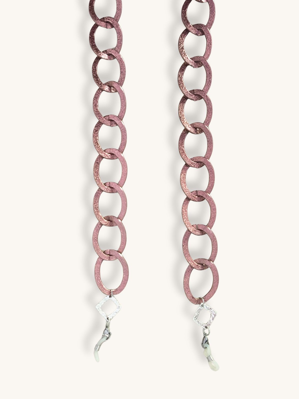 Ανακάλυψε τη διακριτική πολυτέλεια με την αλυσίδα γυαλιών & κολιέ 2-σε-1 σε ροζ χρυσό από αλουμίνιο, με κομψά στοιχεία από επαργυρωμένο ορείχαλκο. Οι μεγάλοι κρίκοι χαρίζουν bold χαρακτήρα, ενώ ο ρομαντικός τόνος του ροζ χρυσού προσφέρει μια πιο θηλυκή και elegant αισθητική.