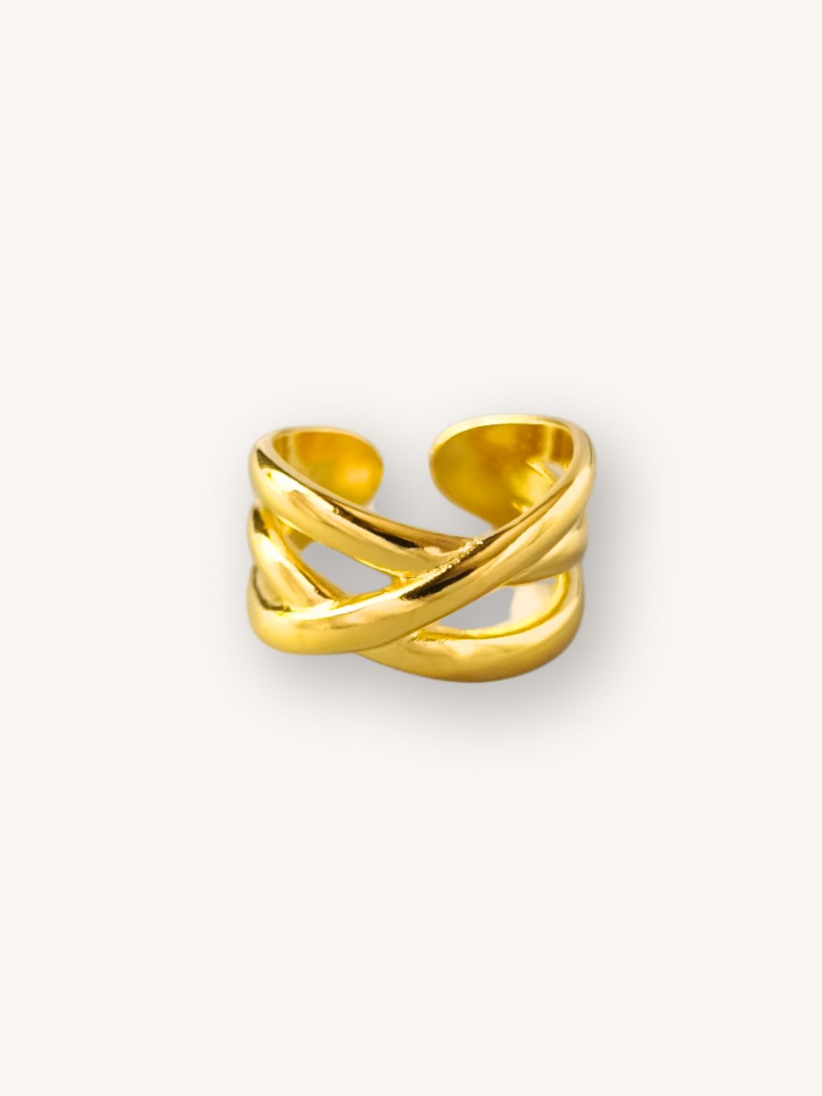 Αναβάθμισε το στυλ σου με αυτό το δαχτυλίδι από ορείχαλκο με επιχρύσωση 24Κ και μοναδικό πλεκτό σχέδιο. Η υφή του αποπνέει κομψότητα και δυναμισμό, αποτελώντας ένα statement κόσμημα που μπορεί να φορεθεί τόσο μόνο του όσο και σε layering με άλλα δαχτυλίδια.