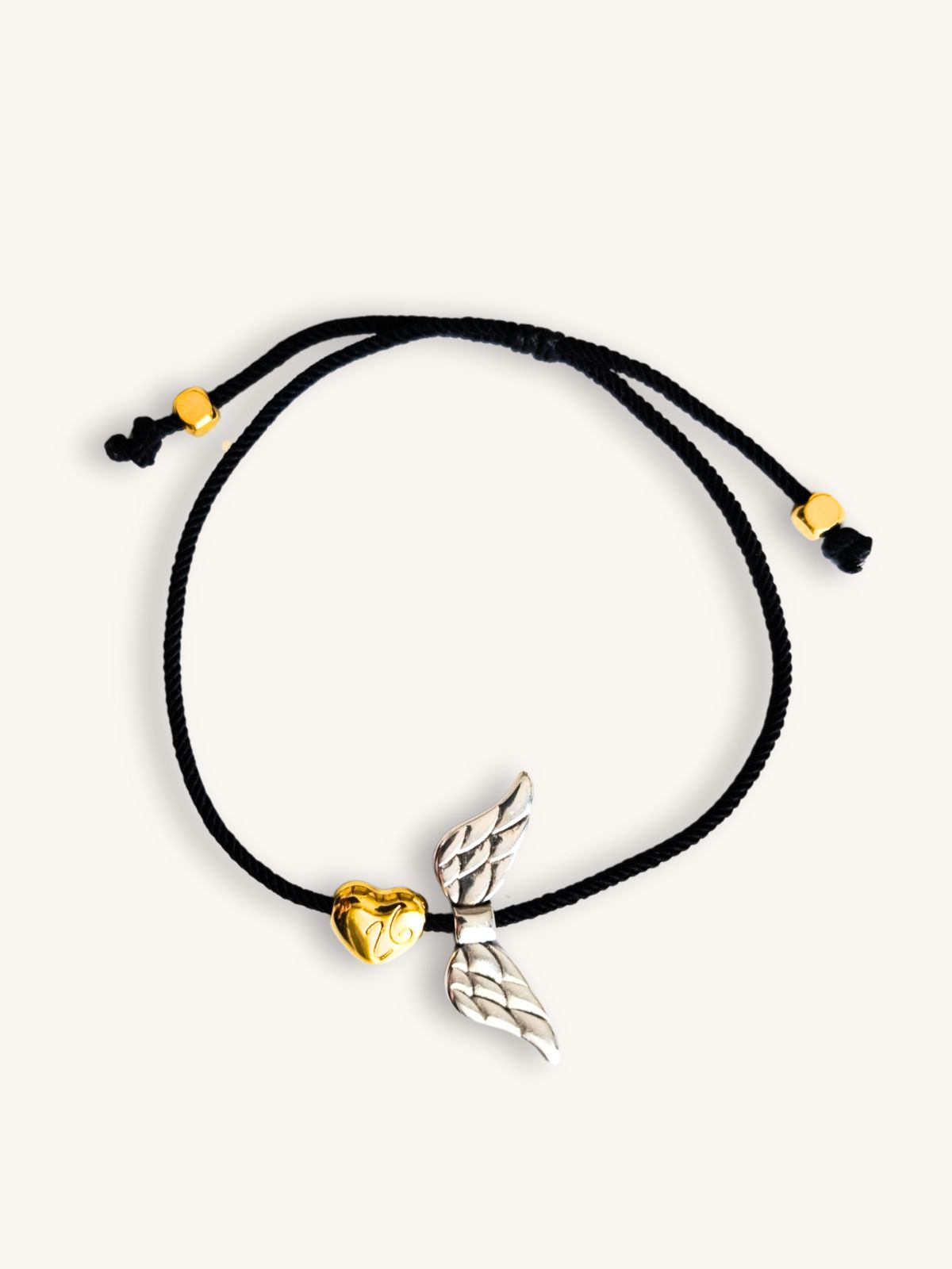 Γούρι ’26 Σετ με Μικρό Βελούδινο Μπορντώ Ρόδι & Βραχιόλι με Χρυσά Φτερά Αγγέλου & Ασημί Καρδούλα