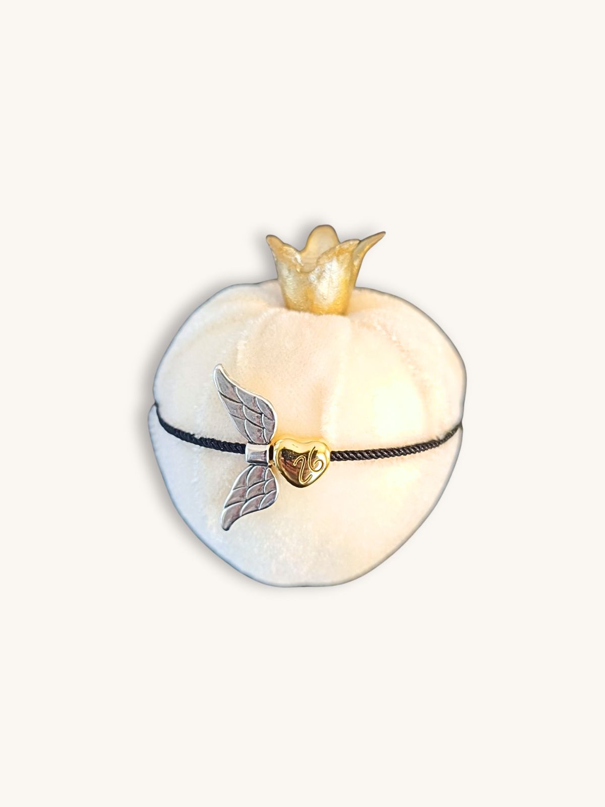 €22,00Γούρι ’26 Σετ με Μικρό Βελούδινο Ιβουάρ Ρόδι & Βραχιόλι με Ασημί Φτερά Αγγέλου & Χρυσή Καρδούλα