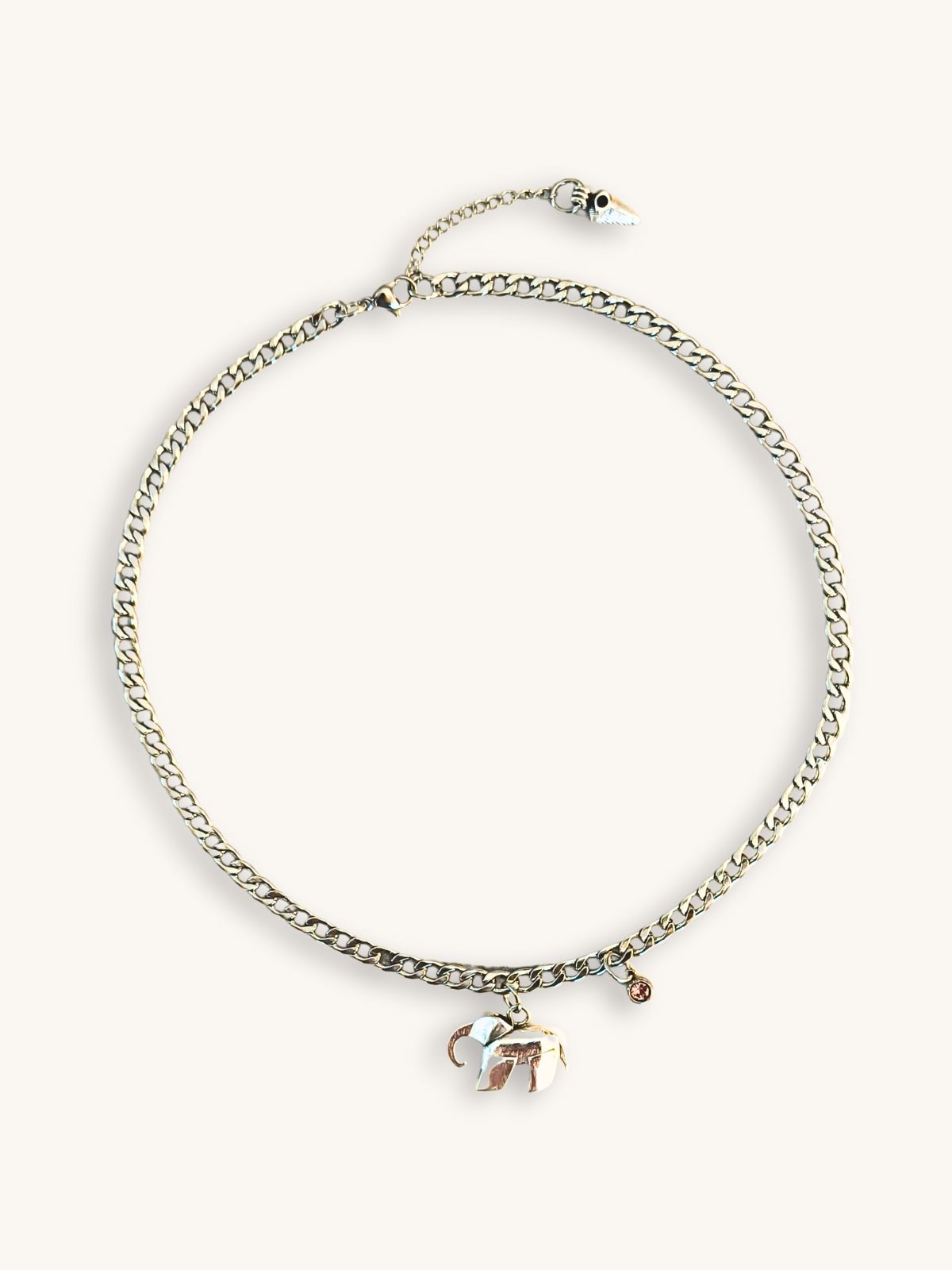 Κολιέ Αλυσίδα Ασημί με Ελεφαντάκι και Ροζ Κρυσταλλάκι