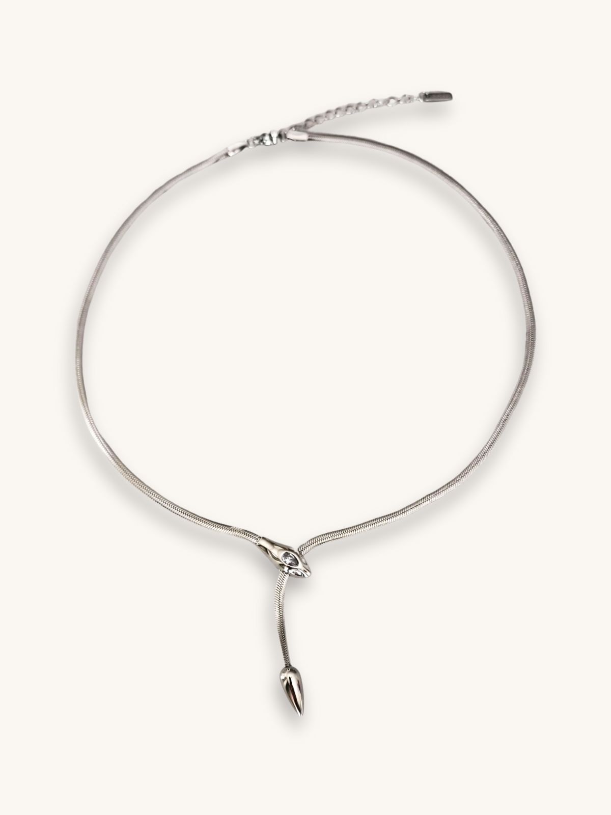 Κολιέ Αλυσίδα Φιδέ σε Ασημί με Φίδι & Κρυσταλλάκι