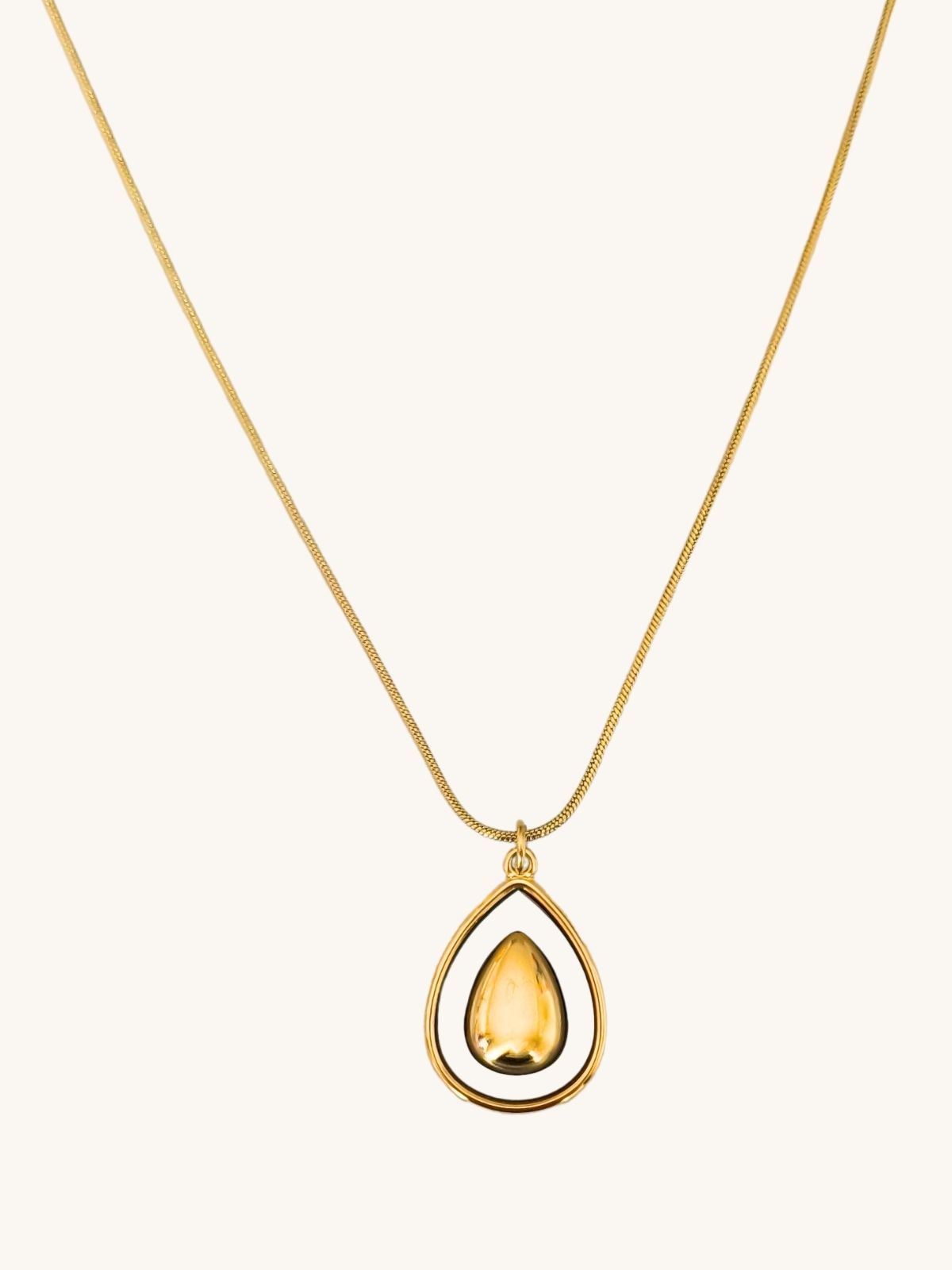 Απόδωσε διακριτική πολυτέλεια στο look σου με αυτό το χρυσό κολιέ αλυσίδα με δίχρωμο στοιχείο σε σχήμα σταγόνας, σε χρυσό και ασημί. Το ρευστό, κομψό του σχήμα προσθέτει μια θηλυκή και elegant πινελιά, ενώ ο δίχρωμος σχεδιασμός το κάνει να ξεχωρίζει χωρίς υπερβολή. Η λαμπερή χρυσή αλυσίδα αγκαλιάζει το μοτίφ σταγόνας δημιουργώντας ένα κόσμημα που φοριέται άνετα από το πρωί έως το βράδυ. Συνδύασέ το με minimal σκουλαρίκια ή layered κολιέ για ένα refined, σύγχρονο αποτέλεσμα.