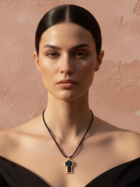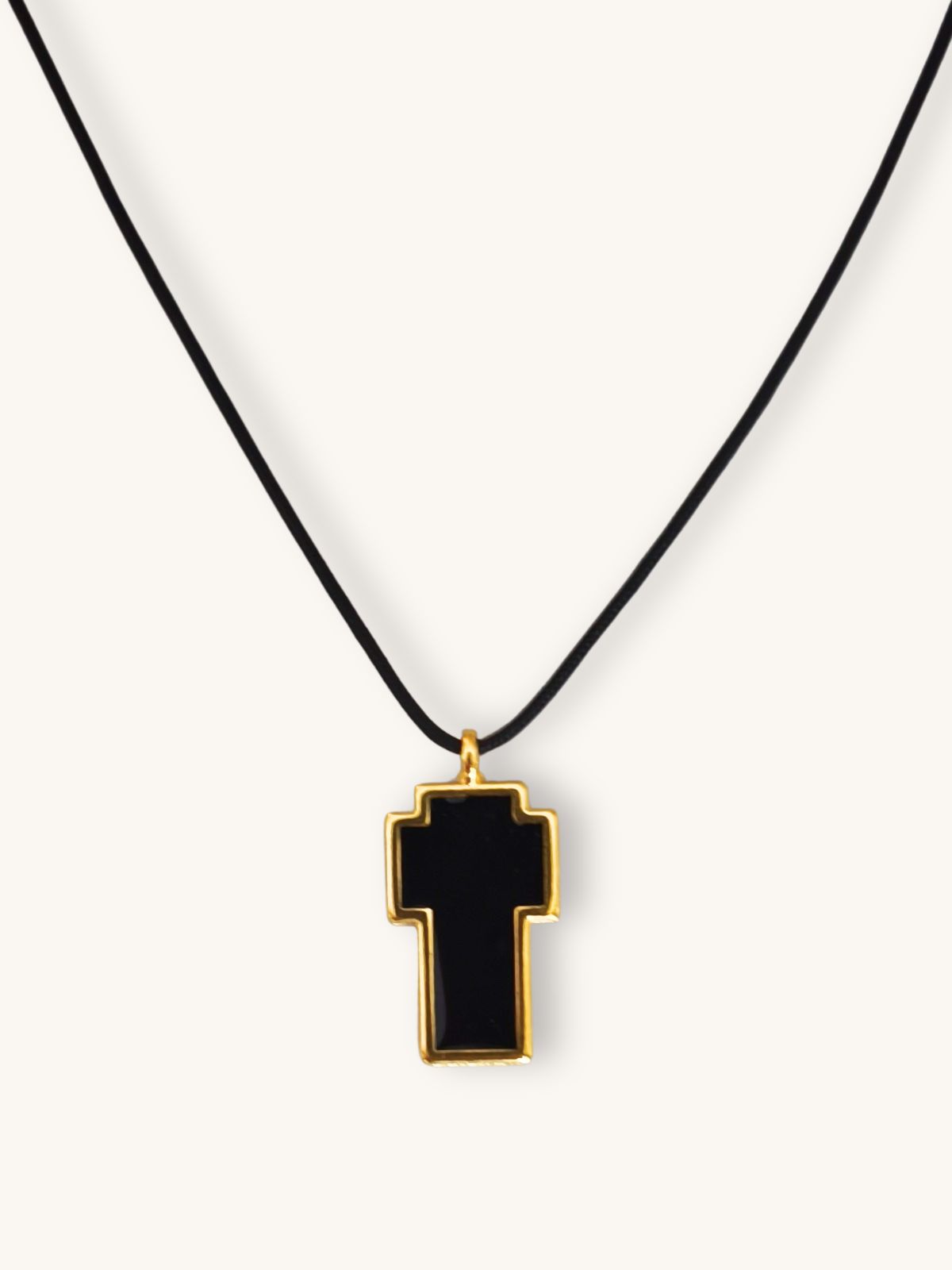 Statement κολιέ κορδόνι με μεγάλο μαύρο σταυρό — bold, μοντέρνο και εντυπωσιακό, αποτελεί ιδανικό κομμάτι για όσους αγαπούν δυναμικά, καθαρά σχήματα και contemporary αισθητική. Φοριέται εύκολα μόνο του ή ως το κεντρικό στοιχείο ενός minimal look.