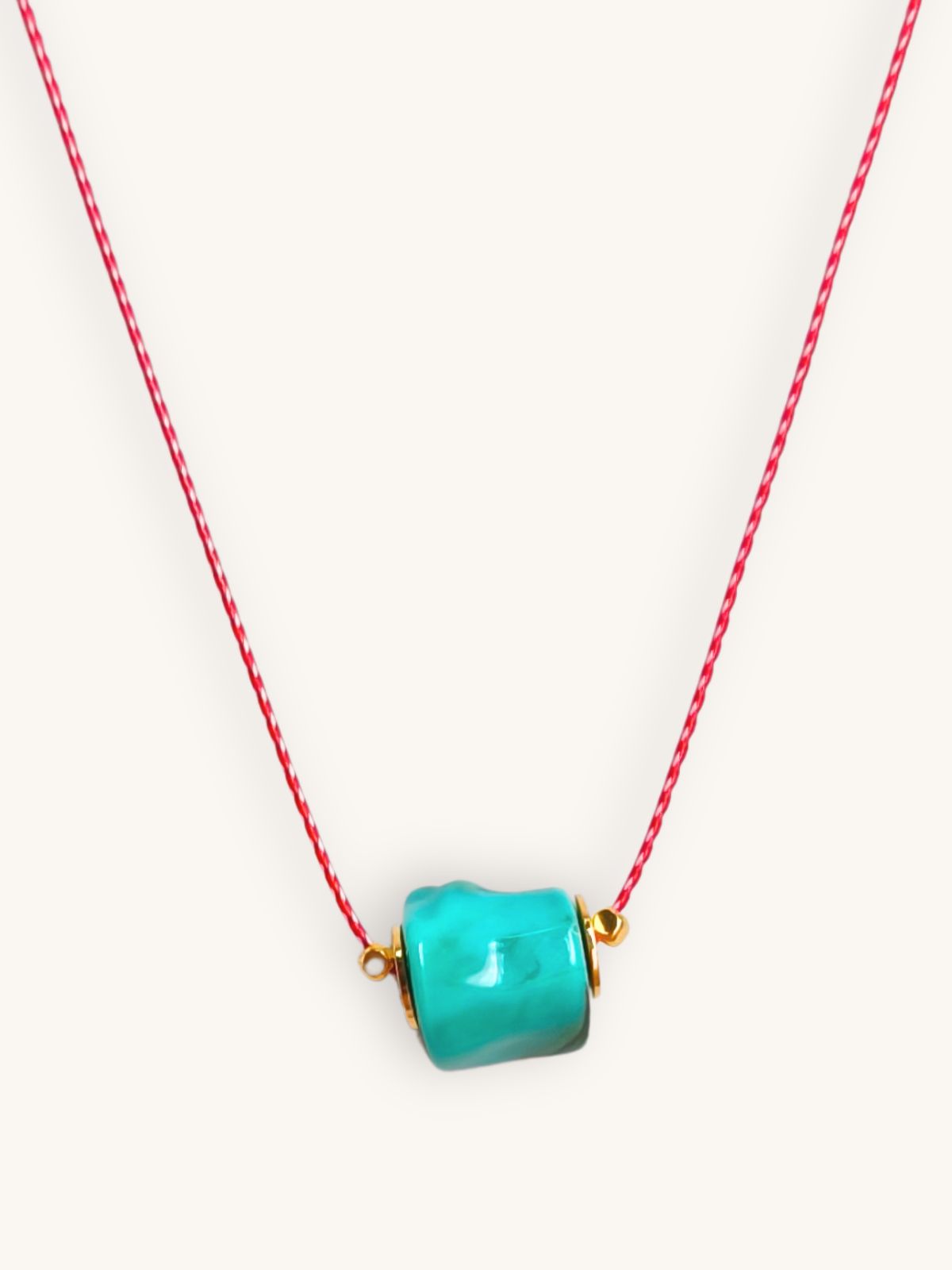 Καλωσορίστε την άνοιξη με ένα μοναδικό χειροποίητο κολιέ Μαρτάκι που συνδυάζει την ελληνική παράδοση με την ανοιξιάτικη διάθεση. Το κλασικό κόκκινο-λευκό κορδόνι κοσμείται από μια ακρυλική abstract χάντρα σε τυρκουάζ/βεραμάν χρώμα που τραβά όλα τα βλέμματα. Η σύνθεση πλαισιώνεται από ορειχάλκινα διακοσμητικά σε με επιχρύσωση 24Κ, δημιουργώντας μια μαγική αντίθεση. Το κολιέ είναι αυξομειούμενο με χειροποίητο κλείσιμο μακραμέ, εξασφαλίζοντας τέλεια εφαρμογή στο ύψος που επιθυμείτε.