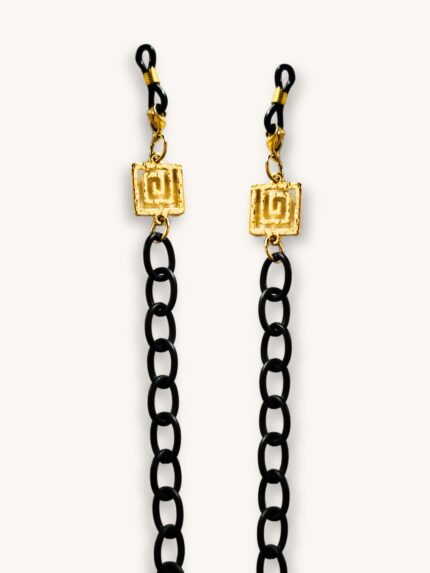 Αλυσίδα Γυαλιών & Κολιέ 2-σε-1 σε Μαύρο Ματ με Χρυσούς Μαιάνδρους