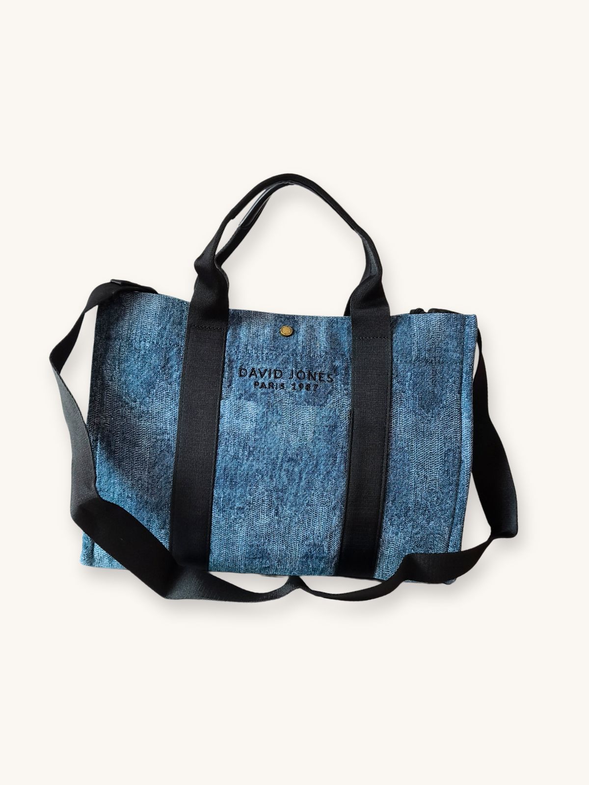 Τσάντα Ώμου Denim David Jones με Μαύρο Χερούλι και Λουρί