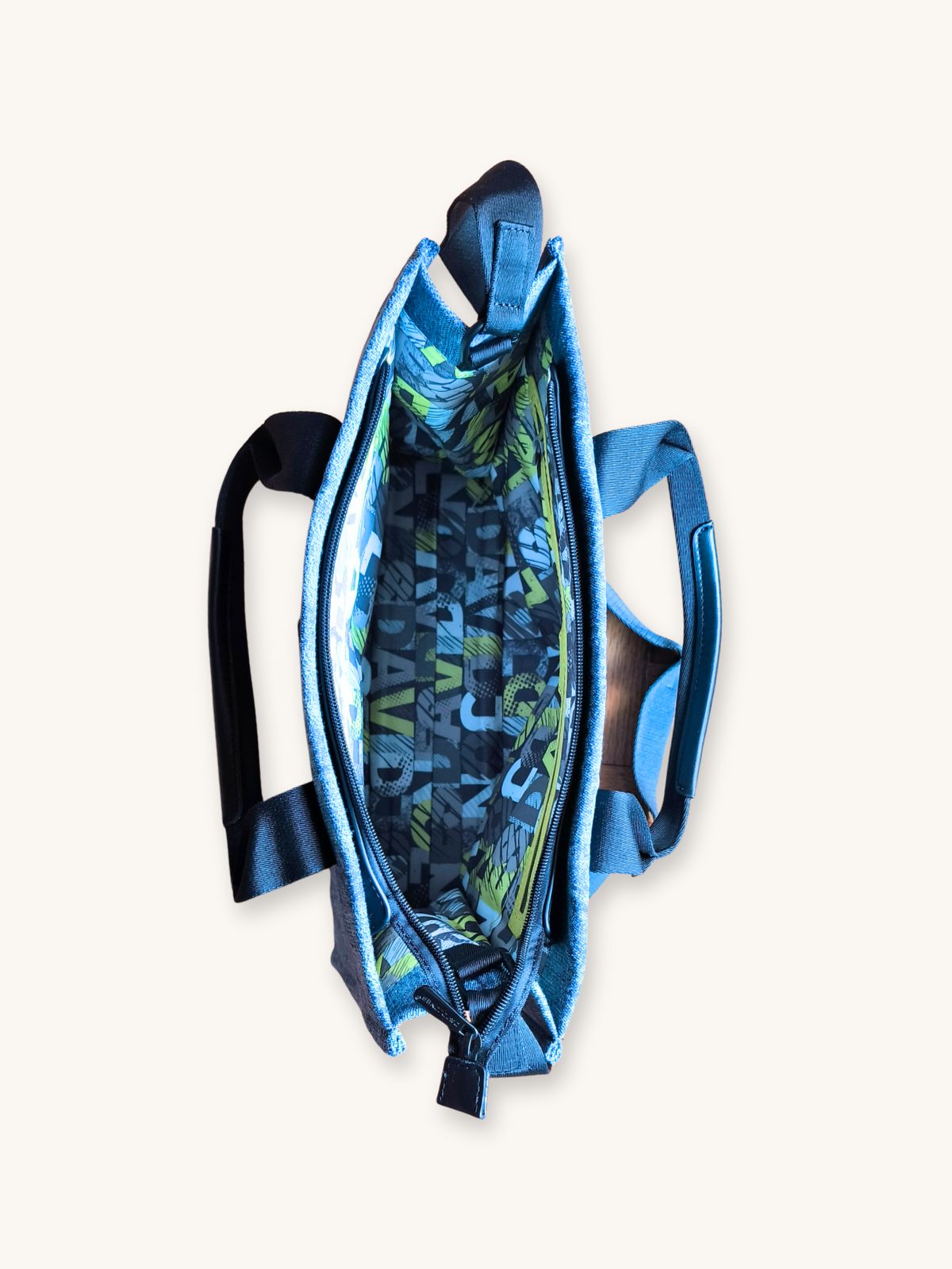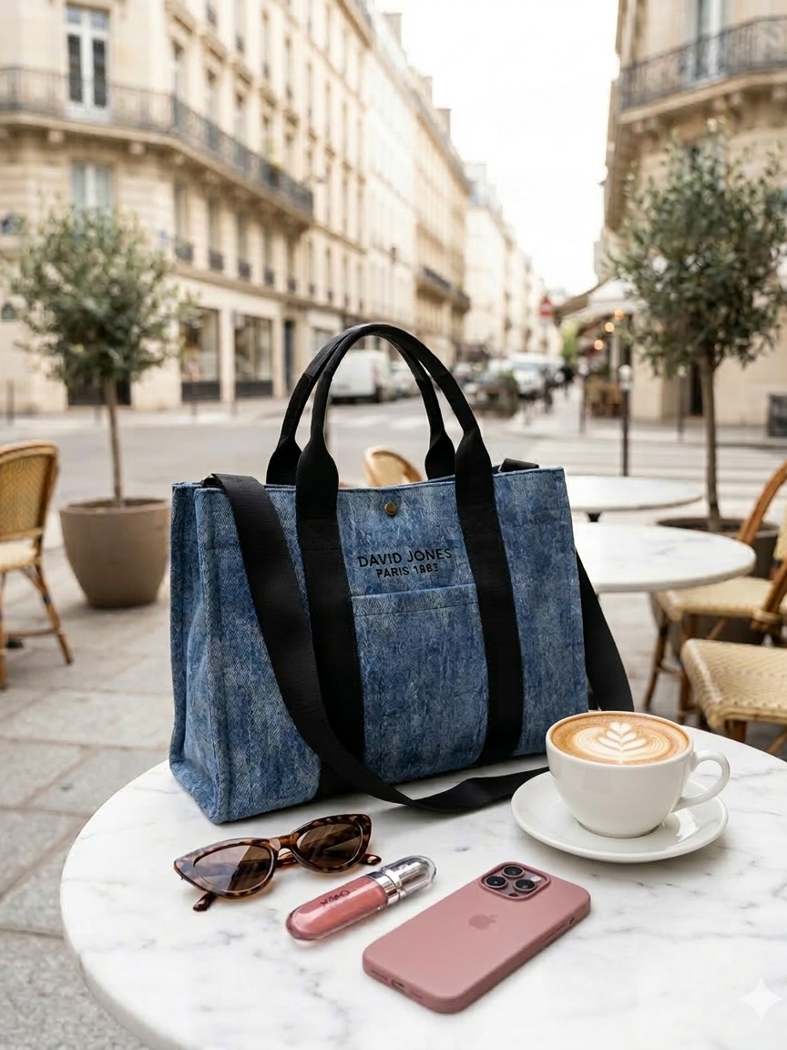 Ανακάλυψε την Τσάντα Ώμου Denim David Jones με μαύρο χερούλι και λουρί, κατασκευασμένη εξωτερικά από πολυουρεθάνη και εσωτερικά από πολυεστέρα. Διαθέτει κλείσιμο με φερμουάρ, μια διακριτική εξωτερική τσέπη και μία εσωτερική για πρακτική οργάνωση, ενώ οι διαστάσεις 36x26x12 εκ. την καθιστούν ιδανική για καθημερινή χρήση, συνδυάζοντας στυλ και λειτουργικότητα με τη μοντέρνα denim αισθητική.
