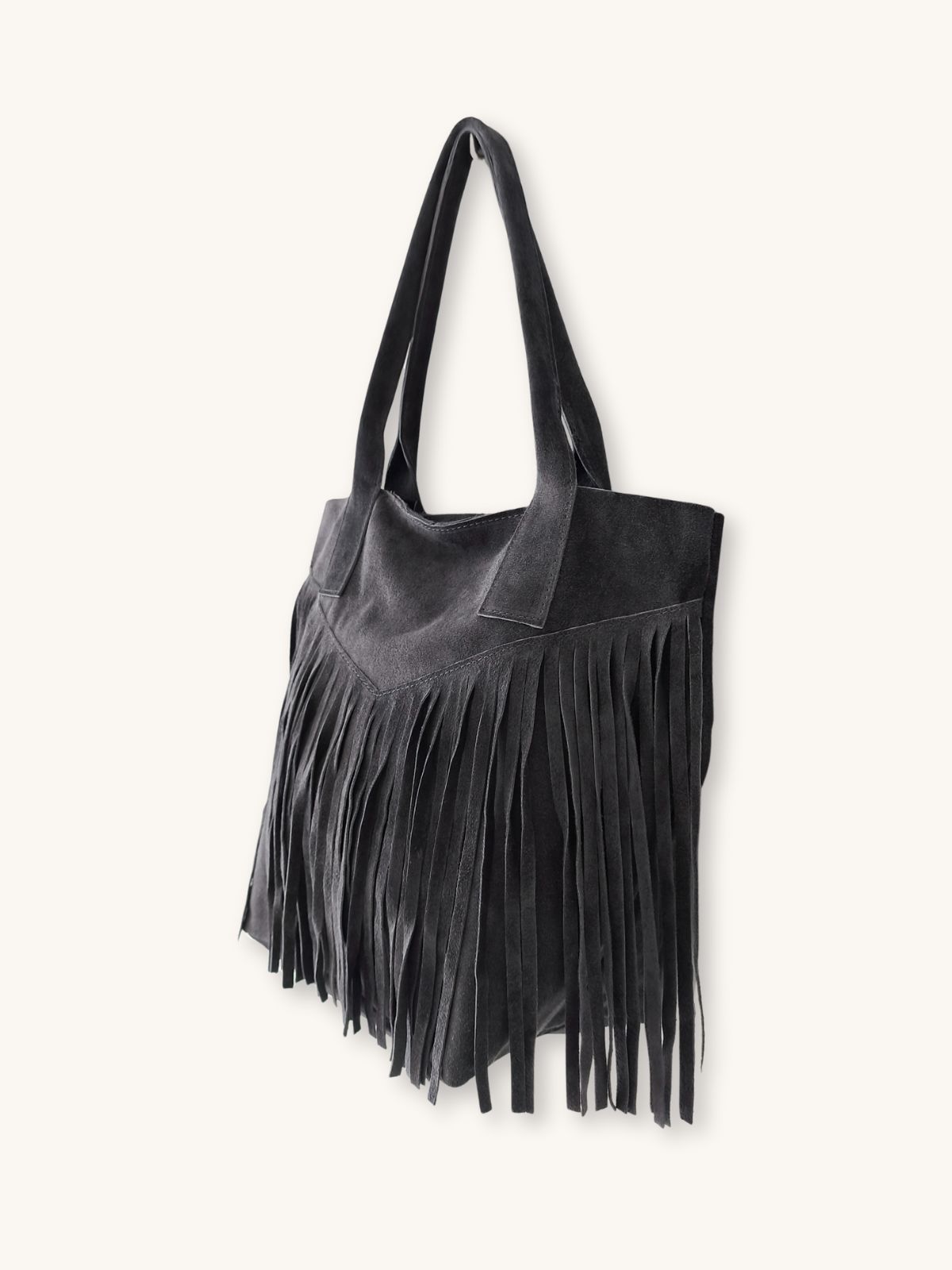 Ανακάλυψε την γκρι δερμάτινη τσάντα ώμου με κρόσια, ένα statement αξεσουάρ που συνδυάζει μοντέρνα κομψότητα με boho αισθητική. Κατασκευασμένη από ποιοτικό δέρμα, αποτελεί την ιδανική επιλογή για εμφανίσεις με χαρακτήρα και διακριτική πολυτέλεια.