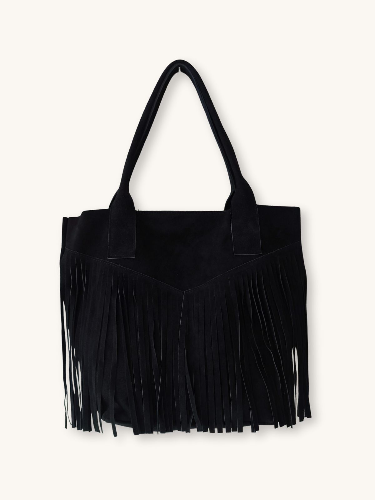 Ανακάλυψε την μαύρη δερμάτινη τσάντα ώμου με κρόσια, ένα statement αξεσουάρ που συνδυάζει διαχρονική κομψότητα με boho χαρακτήρα. Κατασκευασμένη από ποιοτικό δέρμα, προσθέτει δυναμισμό και στιλ σε κάθε καθημερινή ή βραδινή εμφάνιση.